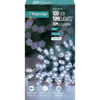 - 1 x Premier 100 LED TimeLights White Battery Operated String Lights at 10 m