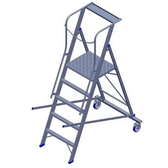 - The Topman Aluminum Rolling Warehouse 4+1-Tier Step Ladder (196.5 x 134.3 x 90 cm) ensures durability through rigid construction with full welding.