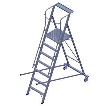 - The Topman Aluminum Rolling Warehouse 6+1-Tier Step Ladder (243.5 x 169.8 x 90 cm) ensures durability through rigid construction with full welding.