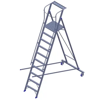 - The Topman Aluminum Rolling Warehouse 9+1-Tier Step Ladder (314 x 223 x 110 cm) ensures durability through rigid construction with full welding.