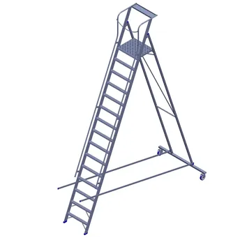 - The Topman Aluminum Rolling Warehouse 14+1-Tier Step Ladder (431.5 x 311.8 x 130 cm) ensures durability through rigid construction with full welding.