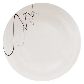 - Features a classic black and white color scheme for a modern table setting appearance.