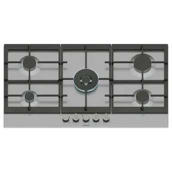 - The Siemens IQ500 Built-In 5-Burner Gas Hob, EC9A5RI90M (52 x 91.5 x 5.1 cm) features detachable metallic sword knobs for easy cleaning.