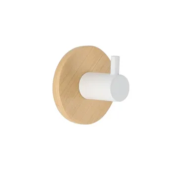 - Features a durable white-finished painted metal hook paired with a bamboo base for a stylish and eco-conscious design.