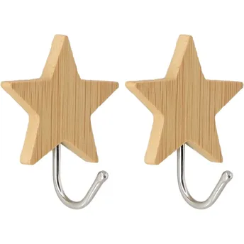 Tendance 3M Stainless Steel Hooks Set W/Bamboo Base (Etoile, 2 Pc.)