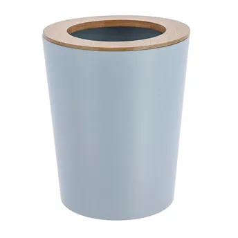 Tendance Metal Dustbin W/Bamboo Lid (Blue, 5L)