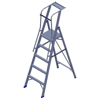 - The Topman Aluminum Heavy Duty Platform 4+1-Tier Step Ladder (216.5 x 118.5 x 62.5 cm) provides secure railing support for safe access.