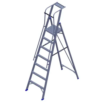 - The Topman Aluminum Heavy Duty Platform 6+1-Tier Step Ladder (273.5 x 152.5 x 68.5 cm) provides secure railing support for safe access.