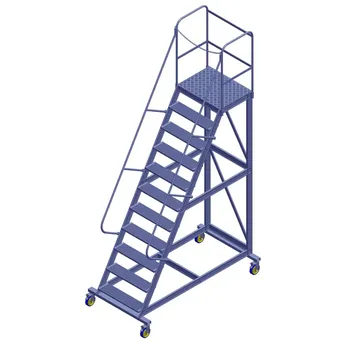 - The Topman Aluminum Rolling Staircase 10+1-Tier Step Ladder (375 x 207 x 110 cm) features a rigid construction with full welding for durability.