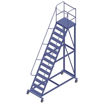- The Topman Aluminum Rolling Staircase 13+1-Tier Step Ladder (450 x 250.5 x 110 cm) features a rigid construction with full welding for durability.