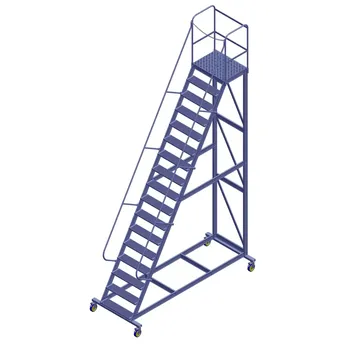 - The Topman Aluminum Rolling Staircase 16+1-Tier Step Ladder (525 x 294 x 120 cm) features a rigid construction with full welding for durability.