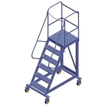 - The Topman Aluminum Rolling Staircase 5+1-Tier Step Ladder (250 x 134.5 x 90 cm) features a rigid construction with full welding for durability.