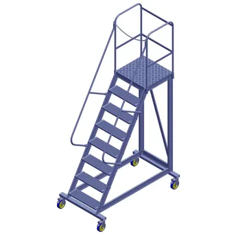 - The Topman Aluminum Rolling Staircase 7+1-Tier Step Ladder (300 x 163.5 x 95 cm) features a rigid construction with full welding for durability.
