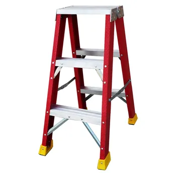 - The Topman Fiberglass Double-Sided 3-Tier Step Ladder (85.5 x 68 x 42 cm) features heavy-gauge steel hinges for superior strength.