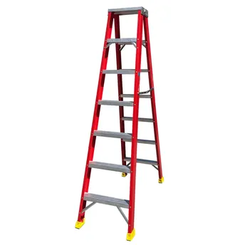 - The Topman Fiberglass Double-Sided 7-Tier Step Ladder (201 x 132 x 54 cm) features heavy-gauge steel hinges for superior strength.