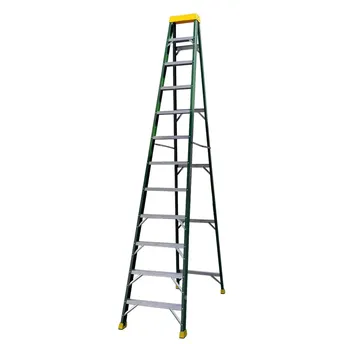 - The Topman Fiberglass Single-Sided 12-Tier Step Ladder (345.5 x 203 x 70 cm) features heavy-gauge steel hinges for superior strength.