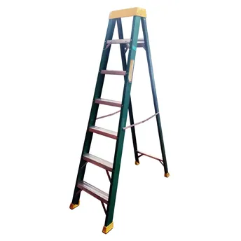 - The Topman Fiberglass Single-Sided 7-Tier Step Ladder (201 x 125.5 x 55 cm) features heavy-gauge steel hinges for superior strength.