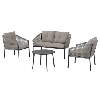 - The Tulum 4-Seater Steel Rope Outdoor Sofa Set W/Cushions (122 x 67 x 74 cm) is stylish and comfortable outdoor furniture set including 2 single chairs, 1 double chair, and 1 round table.