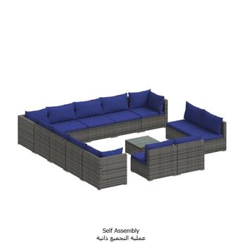 - 1 x vidaXL 14 pcs Garden Lounge Set with Cushions Grey Poly Rattan at 60 x 60 x 30 cm