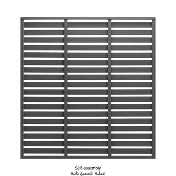 - Color: Grey; Material: WPC, steel; Size: 180 x 180 cm (W x H); Suitable for boundary fencing, screening or partitioning; Slats for efficient sunlight and air; Weather resistant; Without posts; Assembly required: Yes